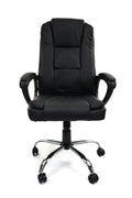 Ervaar ultiem comfort en stijl met deze luxe comfortabele bureaustoel, perfect voor zowel thuis als op kantoor. De goedgevulde kussens, armsteunen en rugleuning zorgen voor een uitstekende zithouding en bieden essentiële ondersteuning aan de onderrug en nek. Het 5-assige verchroomde frame met zwenkwielen maakt deze stoel niet alleen functioneel, maar ook een elegante toevoeging aan je werkruimte. Het zwarte kunstleer is eenvoudig schoon te maken, en de zachte rubberen wielen beschermen je vloer tegen krassen. Met de ingebouwde gasveer pas je moeiteloos de hoogte aan voor de perfecte zitervaring.