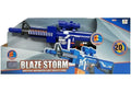 Met deze super coole NERF-achtige sniper kan je erg nauwkeurig schieten! Dit blauwe NURF speelgoed geweer is voorzien van 20 pijltjes en behoort tot de categorie "roller rifle", wat wil zeggen dat er binnenin twee of meer rollen zijn die snel draaiend het nerf pijltje naar binnen trekken en door de loop schieten. Daag je vrienden uit en laat het speelplezier beginnen! Deze speelgoed NURF pistool heeft op de loop een handvat zitten waarmee je de soft bullet gun steviger kunt vastpakken. Het achterste gedeelte bestaat uit een kolf waardoor het geweer op de schouder kan rusten. Deze sniper heeft een mooi groot magazijn aan de onderkant dat tot wel 15 nerf-achtige pijltjes kan bevatten. Aan de rechterkant van het speelgoed geweer zit een knop waarmee je het magazijn snel en gemakkelijk kunt verwijderen. Het speelgoed geweer heeft 5 AA-batterijen nodig om te werken, deze zijn niet inbegrepen.
