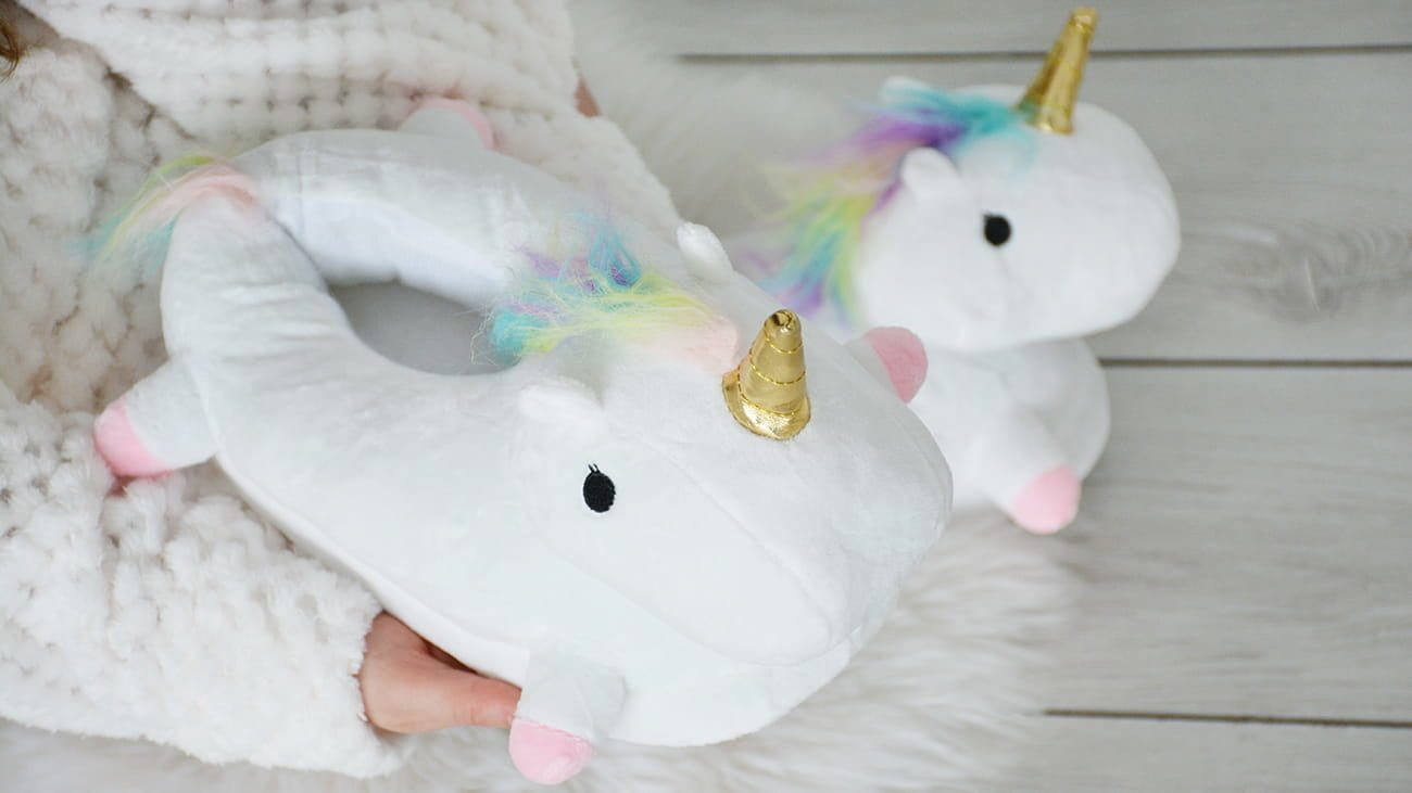 Eenhoorns zijn de meest favoriete mythische wezens. Deze schattige wezens sieren onze telefoonhoesjes, kleding, rugzakken etc. Nu kun je je eenhoorncollectie uitbreiden. Koop nu deze witte eenhoorn pantoffels met gouden hoorn! Deze pantoffels hebben een universele maat (36-41). Een goed cadeau-idee, omdat je de schoenmaat van de ontvanger niet hoeft te weten. Ze passen altijd en zijn ze niet schattig? :) De zool van de pantoffel bestaat uit drie lagen: anti-weekmateriaal met antislip noppen, spons.