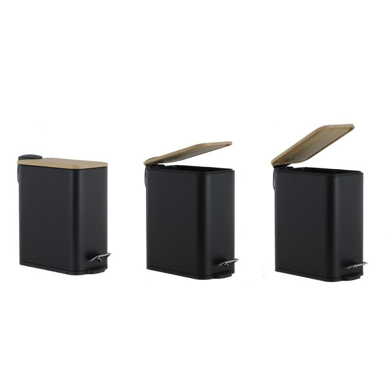 Pedaalemmer - staal en bamboehout, 5L, mat - zwart