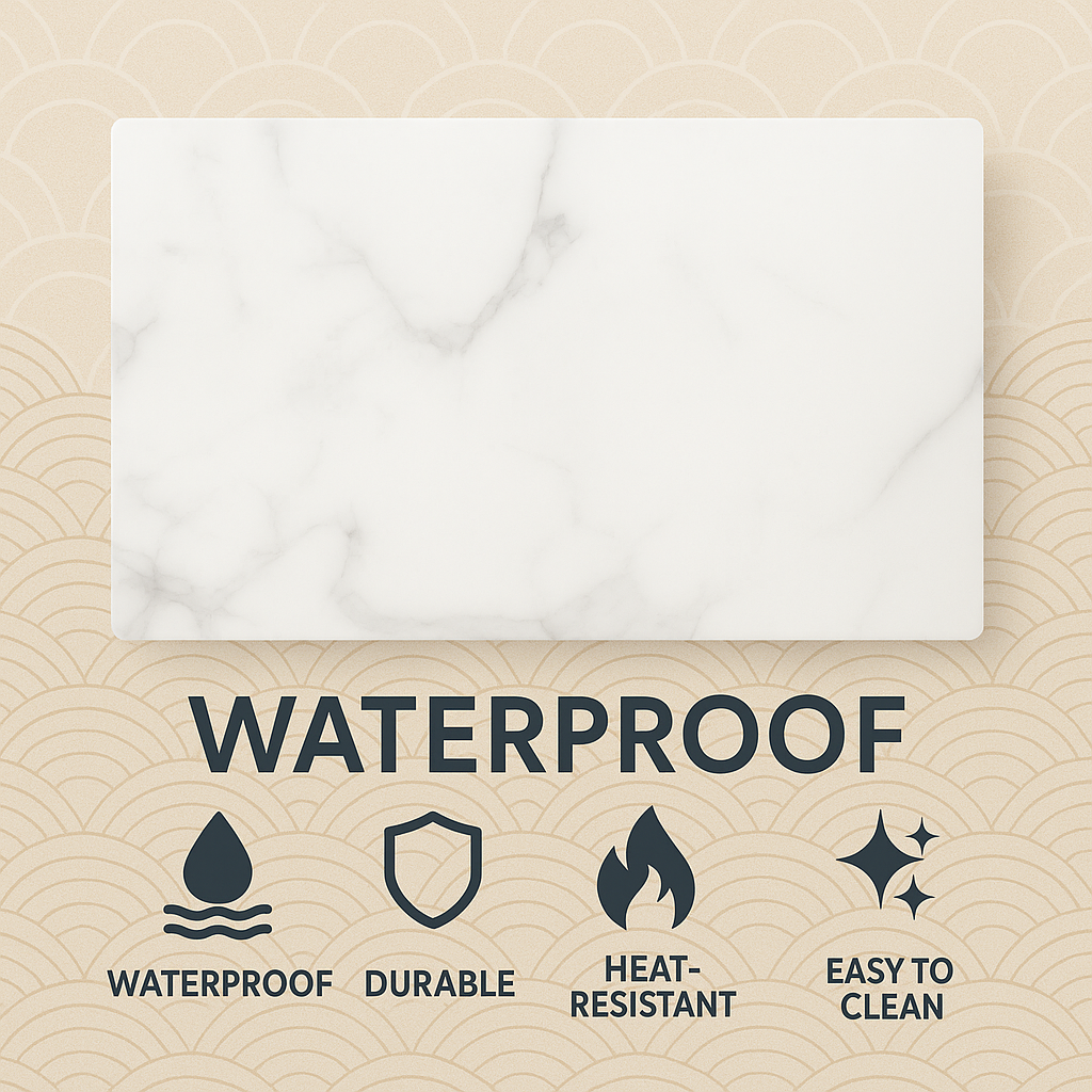 Dit marmer wandpaneel met glanzende afwerking brengt de stijl van Athene in je interieur. Perfect voor snelle renovaties en makkelijk te onderhouden.
