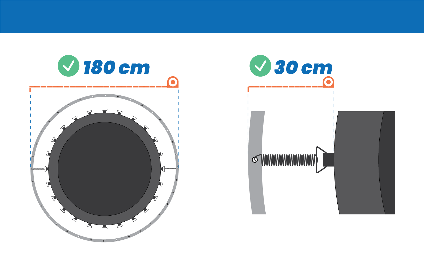 - Breedte van de trampoline rand afdekking: Tussen 30 cm